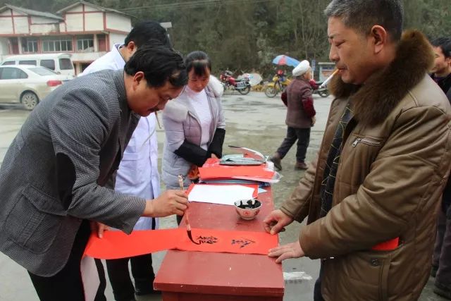 活动第二项是为群众献上精彩的文艺表演,贵州大学青年志愿者宣讲团宣讲十九大精神、桑木镇派出所通过脱贫攻坚知识有奖问答的形式为大家宣讲法治扶贫知识、桑木卫生院爱心义诊活动、银厂村书法爱好者为群众现场书写赠送春联,在此过程中志愿者团队驱车看望6户留守困难儿童,为他们贴春联、送祝福、送新年礼物。通过“五送”一系列志愿服务活动,让贫困群众感受到了党和社会爱心的温暖,进一步提升贫困群众满意度、政策知晓率。在新年来临之际,前为老百姓送来了最真挚的祝福。
