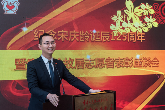 中国宋庆龄基金会副主席井顿泉表示,习近平总书记在党的十九大报告中指出,要推进“志愿服务制度化”,我们每年在宋庆龄诞辰之际举办纪念活动暨志愿者表彰座谈会,形成宋庆龄事业“不忘初心、牢记使命”的光荣传统,就是要将十九大精神落细、落实、落到位。在宋庆龄的革命生涯中,身边一直有志愿者追随,她领导的社会公益维护世界和平和人类进步事业具有超越国界的感召力,有很多工作都是依托国内外志愿者去完成、去推进的。可以说,志愿服务是宋庆龄开展工作的一种组织方式,志愿精神是宋庆龄精神的组成部分。希望宋庆龄故居继续发挥志愿服务示范站作用,为志愿者提供更好的平台、更好的服务;希望故居志愿者再接再厉,讲好宋庆龄的故事,讲好中国故事,展示志愿风采,实现人生价值。