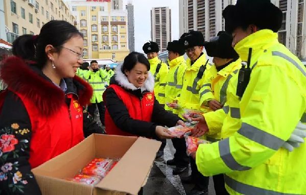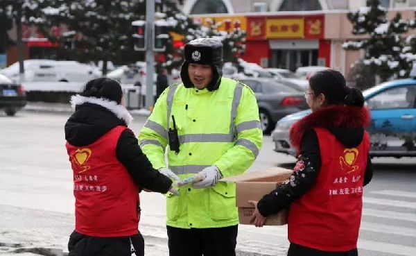 接连两日的降雪,让整个威海变成了银装素裹的世界,降雪降温虽然给市民带来了寒意,雪后的威海青年志愿者们,却为坚守在一线的交警、环卫工人送去了温暖。