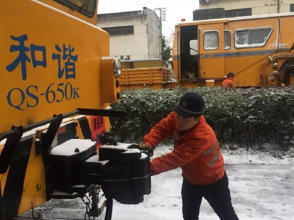 鹰潭工务机械段九江检修车间干部职工加大设备检修力度,积极应对雨雪天气。