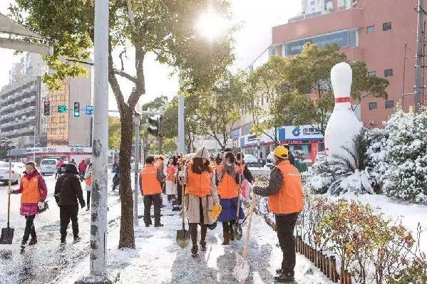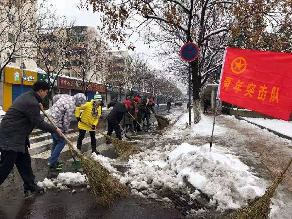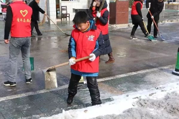 青年志愿者齐心协力,掀起了新一轮扫雪除冰热潮。雪落即净,人到雪无,扫雪除冰的战斗力爆表。