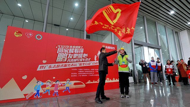 2月1日是春运首日,也是2018年广东志愿者服务春运“暖冬行动”集中行动日。团省委、省志愿者联合会联合广铁集团、东鹏特饮等单位在广州南站举办2018年青春情暖之共青团号专列发车仪式暨广东志愿者服务春运“暖冬行动”启动仪式,拉开了我省志愿者服务春运“暖冬行动”的序幕。团省委副书记梁均达,中国铁路广州局集团有限公司党委副书记、副董事长方铁壁,省志愿者联合会副会长廖满雄等主办单位领导出席活动,为春运志愿者授旗并发放激励物资,督导春运志愿服务工作,了解铁路春运志愿者队伍建设、上岗服务和服务站点运行情况,看望慰问服务一线的春运志愿者。