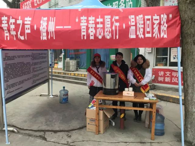 播州区以“情系旅途·温暖回家路”为主题组织西部计划志愿者、义工联合会、学生联合会、播州区青年文明号单位以及网络招募的志愿者共计50余名在遵义南站、南白客运站、商贸城客运站等地开展为期7天的春运志愿服务活动,活动将引导咨询、拎包服务、宣传创业扶持政策、便携充电、失物招领、应急救援等服务,为广大春运旅客特别是老幼病残孕等重点旅客提供便民服务。同时,播州区“四点半课堂”也让播州少年的心在这个凝冻的冬季再次火热起来。