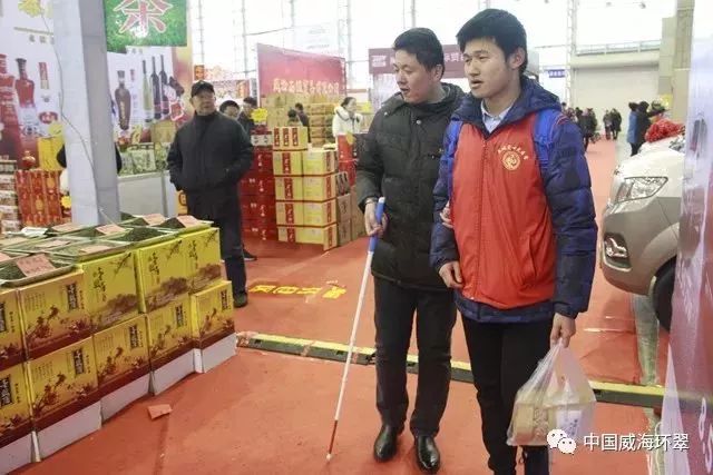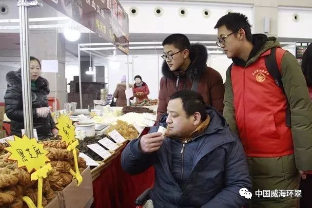 2月6日上午9点,会展中心“第十一届威海年货年礼采购节”上迎来了一批特殊的客人,50多名残疾朋友在长城爱心大本营的组织下,来到这里一起来赶“年货大集”。