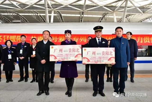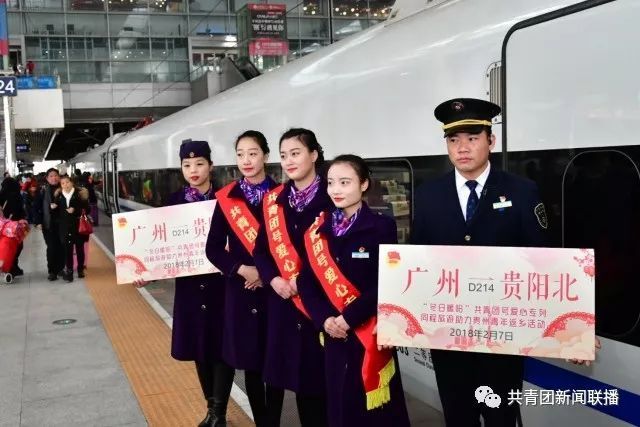 2月7日,广州开往贵阳北的“共青团号”动车专列在广州南站启程,613名乘客踏上春节回家路。至此,2018年“冬日暖阳”春运直通车“共青团号”送客任务已经全部完成,累计将4400名来广州务工人员、大学生等送回家乡。