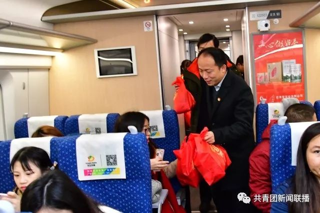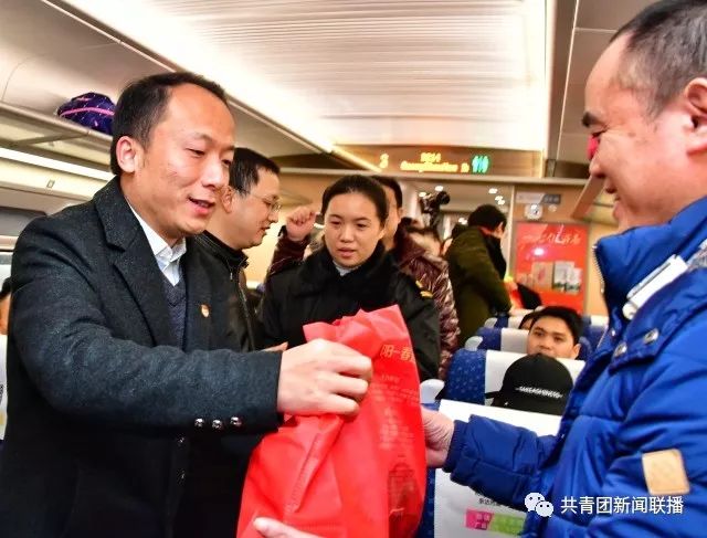 今年春节前夕,团广州市委联合广州市文明办、广州市来穗人员服务管理局、广铁集团等单位,共发出三辆爱心专列。分别是2月1日发出的首趟武昌专列,2月4日发出的邵阳专列,还有2月7日发出的贵阳北动车专列。