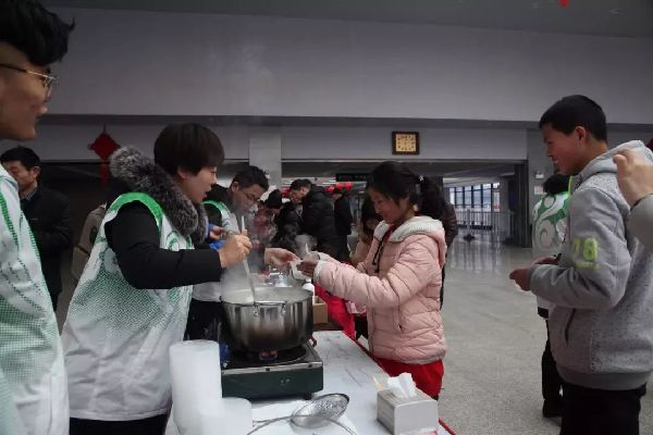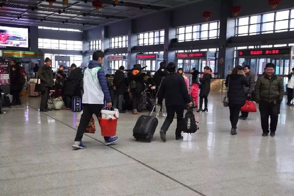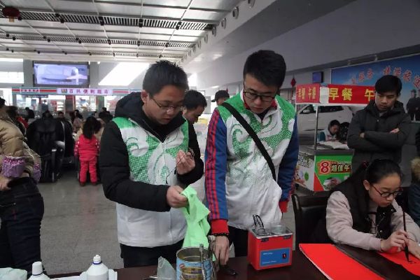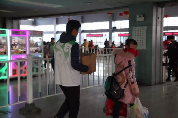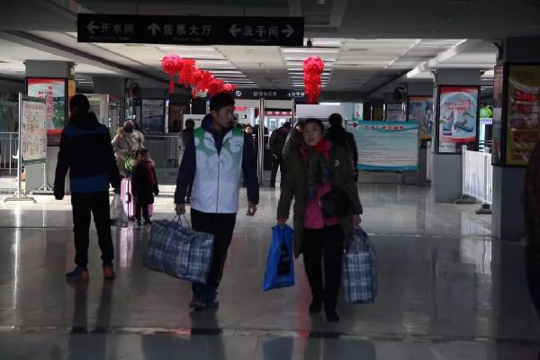 穿起绿马甲,青年志愿者们帮忙扛起了旅途最磨人的包裹行李、讲解起了网络购票流程、帮忙查询起了余票、帮忙哄起了爱哭的小孩、递上一碗热气腾腾的元宵、送上一幅饱含祝福的春联···