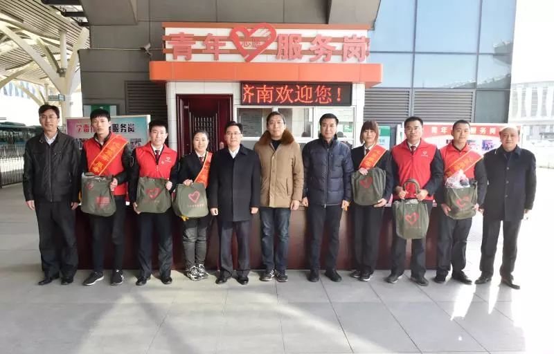 2月10日,团省委书记陈必昌,副书记尚胜波、李子元到济南西客站公交枢纽、广场管理处,看望慰问服务在春运一线的青年志愿者,并送去冲锋衣等慰问品和新春祝福。
