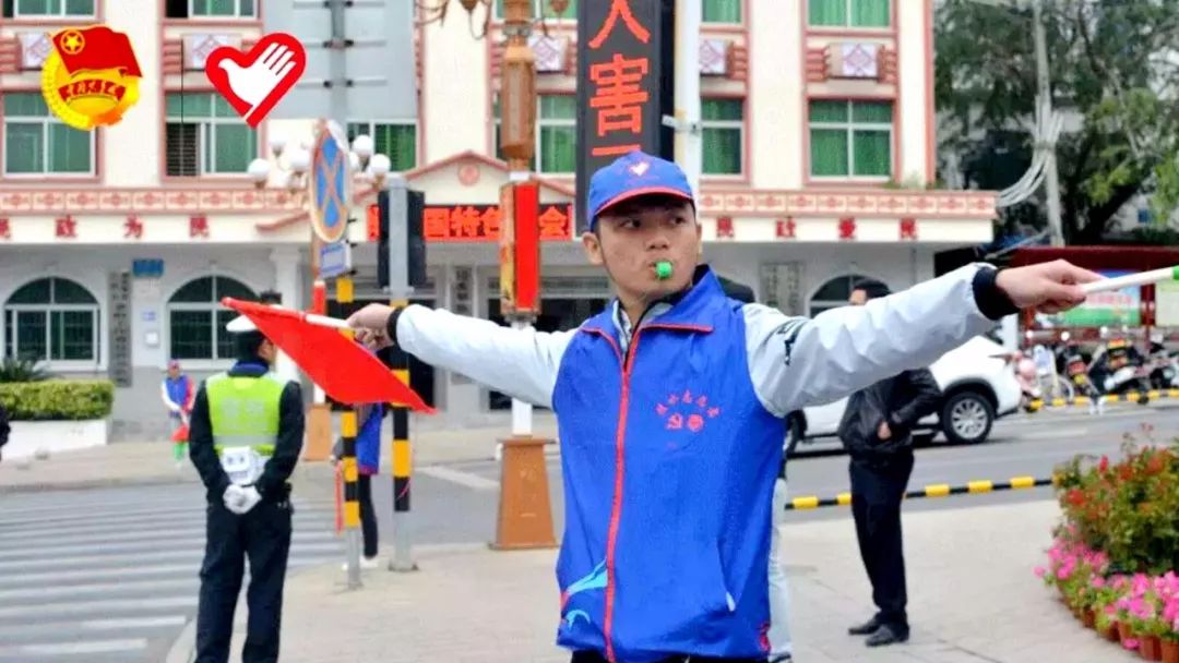▲凌晨8点,陵水县街头,志愿者正在疏导指挥交通。