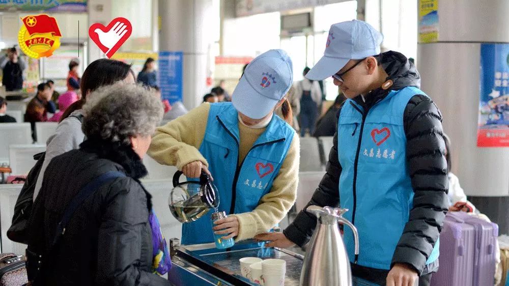 ▲文昌汽运站候车室,志愿者在为冬日里等车的乘客递上热水。