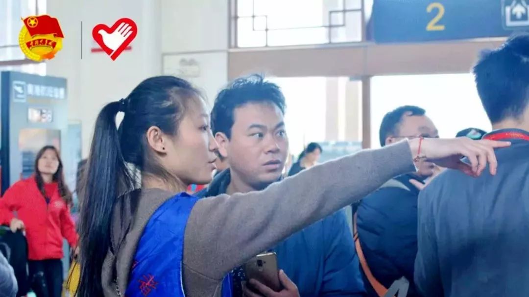 ▲文昌火车站,志愿者正在为乘客说明班次情况。