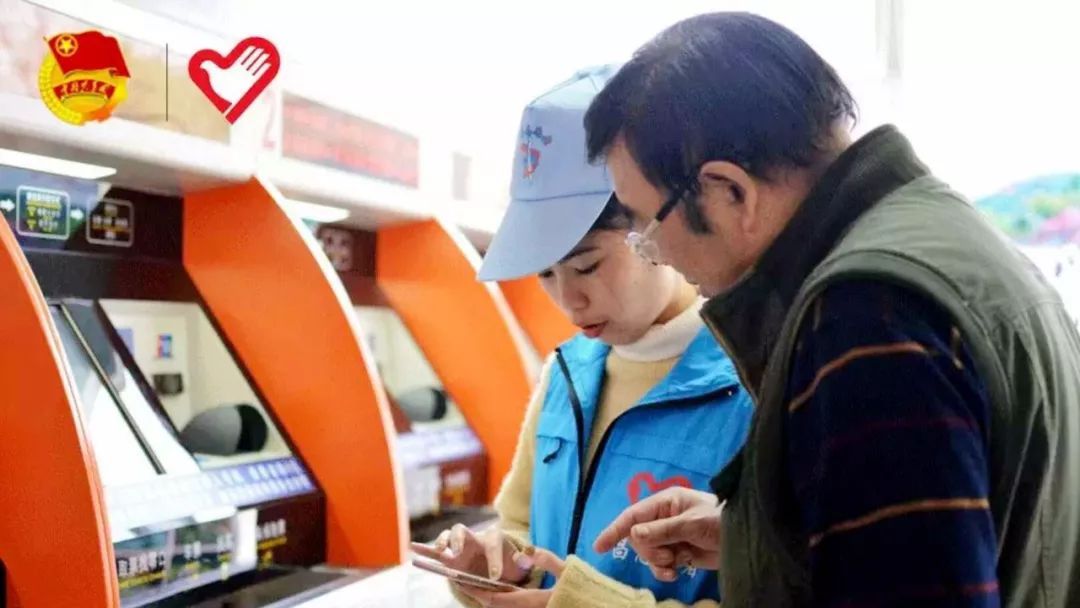▲文昌汽运站,志愿者在教导乘客手机购票。