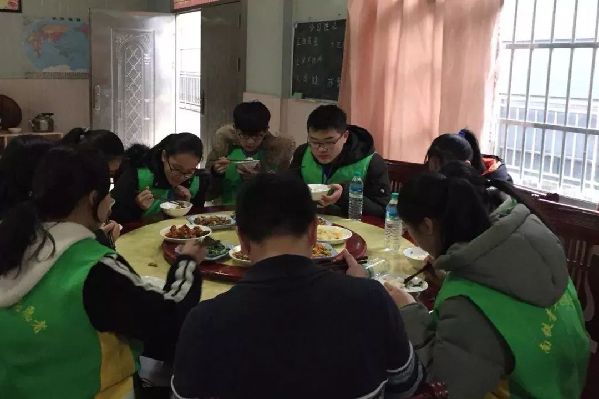 志愿者集体用餐,志愿服务让他们从陌生到亲如一家,社交圈扩大,沟通能力增强。