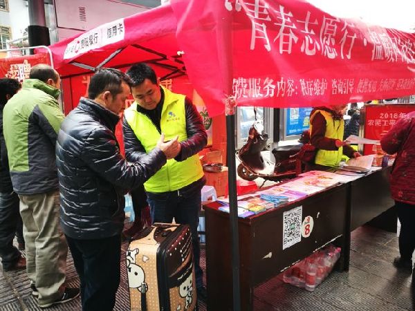 各县(区)分别以“温暖回家路·新春送祝福”、“情系旅途·温暖回家路”、“情系农民工·回家过年”、“青春志愿行·温暖回家路”为主题,组织1000余名志愿者走进火车站、客车站、高速路口等地接力开展帮助农民工购票乘车志愿服务。