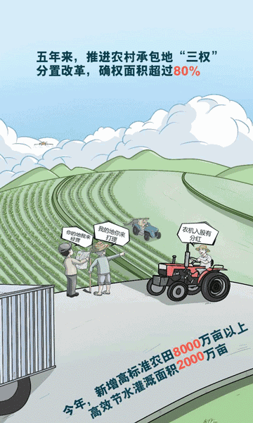 五年来,推进农村承包地“三权”分置改革、确权面积超过80%,改革重要农产品收储制度。