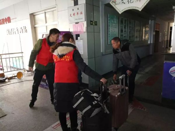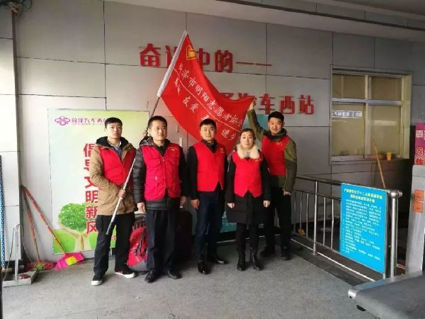 团区委机关干部联合菏泽市明阳志愿者协会在西客站开展志愿服务。