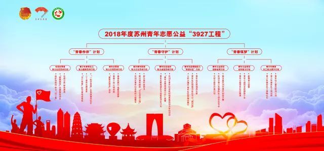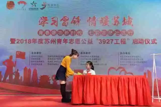 在代表们精彩介绍后,现场的九位领导向各团队代表授出征旗,在旗帜挥舞下,2018年度苏州青年志愿公益“3927工程”正式启动,吹响了苏州青年志愿公益服务集结号。