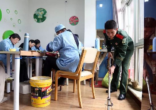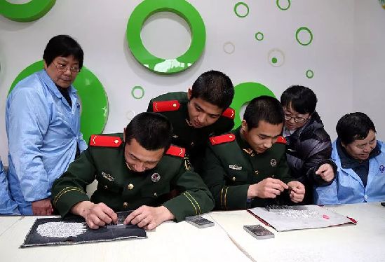 常州机场边检站青年官兵到残疾人就业康复机构常州玉能量工作室,对在此庇护性就业的残疾人进行慰问帮扶。
