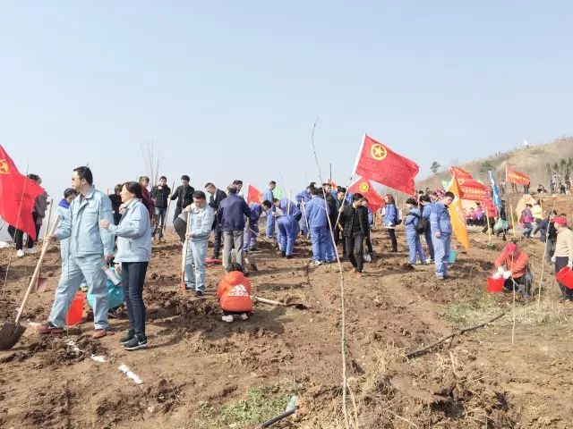 抵达植树现场的市民井然有序的领取树苗,可以看到,已经领取完树苗的市民朋友已经在标注的指定区域内开始植树了。