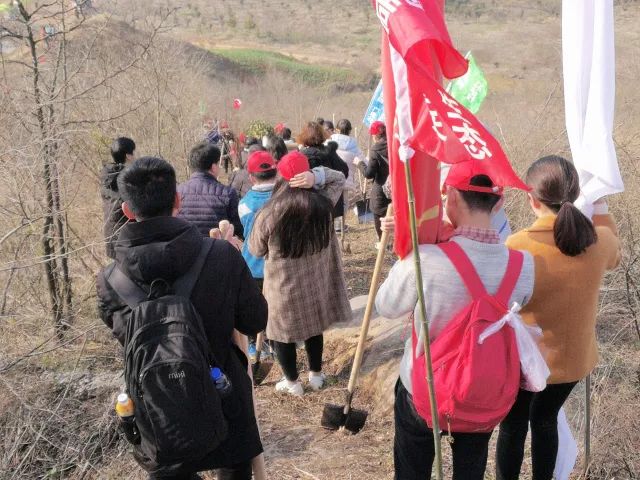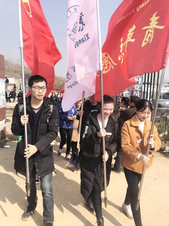 满眼的旗帜和红装,这是我们本次植树活动的志愿者队伍,来自湖北文理学院和襄阳职业技术学院的60余名志愿者,统一着装,光彩靓丽,整齐有序,配合公安民警和城管队员们沿路指引着前来植树的青少年朋友们,也要给他们点个赞!