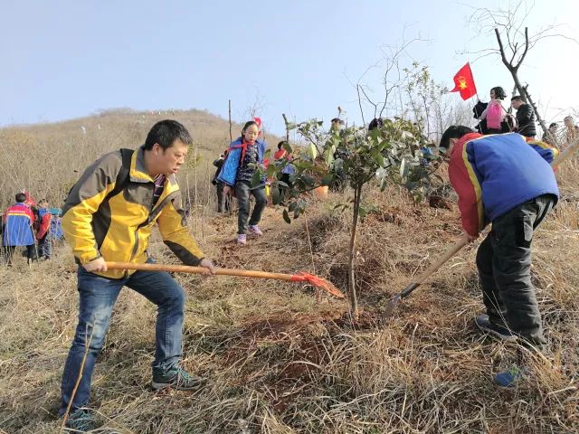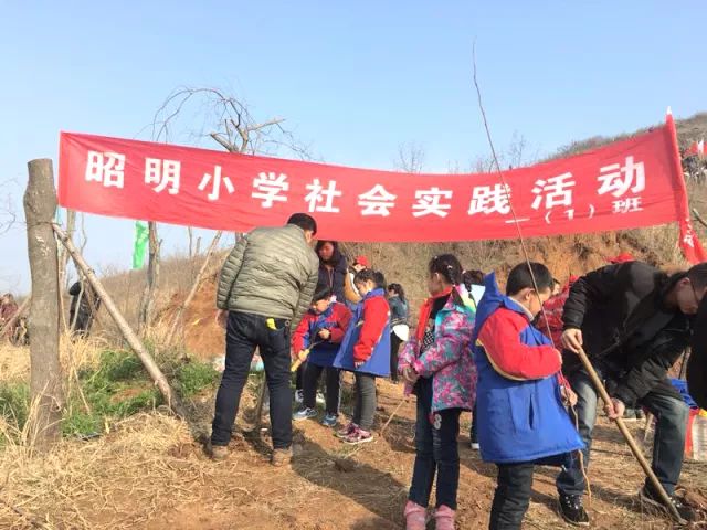昭明小学十二个班500余名学生和家长来到植树现场,小手拉大手共同种下希望之树。