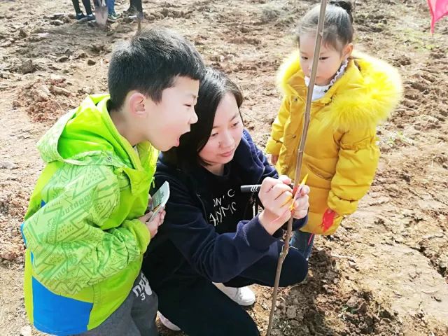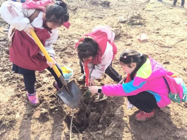 植树现场,我们可以看到很多小朋友的身影,在爸妈的耐心教导下,也是一脸的认真哦~他们挥锹挖土、放苗填土、压实、浇水,各个环节衔接有序,忙得不亦乐乎!