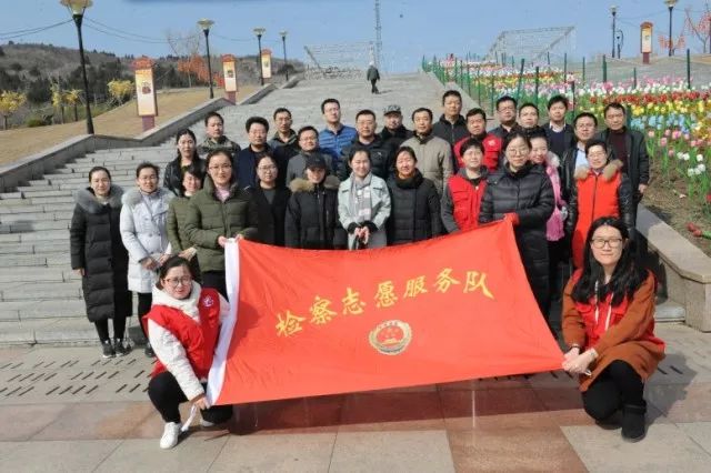 邹平县人民检察院团支部到黄山开展学雷锋护绿志愿服务活动。