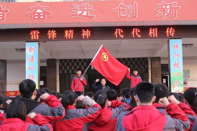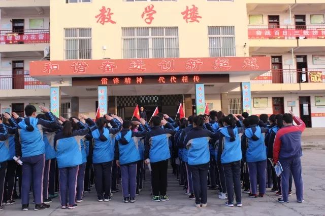 码头镇初级中学团委组织全体师生在教学楼前集会,启动“雷锋活动月”仪式。