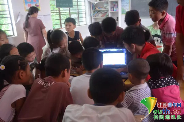 为了转换沉重的气氛以及普及知识。志愿者决定进行科技知识普及。当志愿者拿出笔记本电脑的那一刻,全班同学一股脑儿地围了上来。一位小弟弟告诉志愿者这是他人生中第一次看到笔记本电脑,以前只是在脑海里想象过,但是电脑太贵,他只能凭空想象。