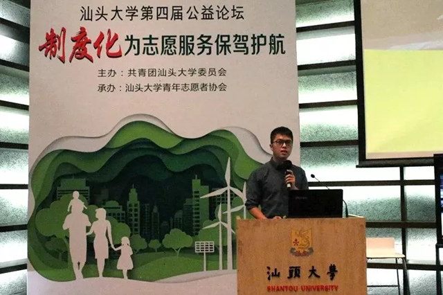 6月15日,由共青团汕头大学委员会主办,汕头大学青年志愿者协会承办的第四届汕头大学公益论坛在图书馆报告厅举行。本次论坛以“制度化,为志愿服务保驾护航”为主题,探讨新时代下志愿服务制度化发展的方向,及如何发挥志愿服务的引领功能。