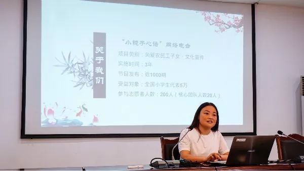 本次培训班课程设置丰富,组委会邀请志愿服务业内专家学者进行了专题讲座。讲座内容包括:项目大赛赛事解读及项目设计、新时代志愿服务的新发展、优秀志愿服务项目案例分析,志愿服务路演答辩技巧、青年志愿服务项目的创意策划与申报书填写。培训期间,参训学员分为四个小组,分别围绕“关爱农民工子女、阳光助残、禁毒教育与法律服务”等领域进行项目路演答辩模拟演练,各项目负责人阐述了各自的项目背景、项目目标、效果和产出、项目预算等方面内容。