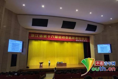 中国青年网北京7月21日电(记者 李川 通讯员 汪晨)6月23日、24日,第十六届省运会志愿者集中培训活动在湖州师范学院、湖州职业技术学院和浙江信息工程学校紧锣密鼓开展,来自各学校和县(区)的共1500余名“湖小青”志愿者全员参加培训。