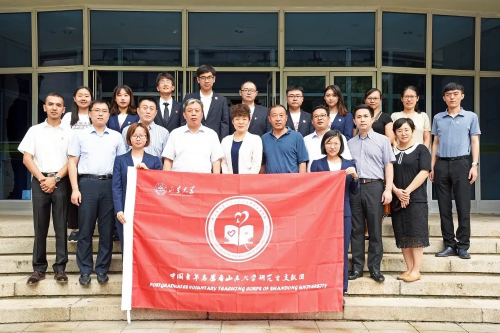 最后,山东大学党委副书记仝兴华教授为研究生支教团授旗,并和与会人员合影留念。据悉,山东大学第二十届研究生支教团将于7月19日从济南站出发奔赴新疆伊宁县。未来一年里,志愿者们将会在遥远异乡锤炼自己,奉献自己,为他们的青春增添更多的亮色。我们祝福他们,也将用他们的言行激励自己,不断提高自身道德修养,真正实践山东大学“学无止境,气有浩然”的精神与气概。