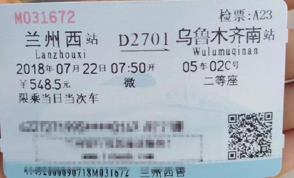 下面就是每年7月最后几天买的人最多、最统一的车票,因为终点是乌鲁木齐。