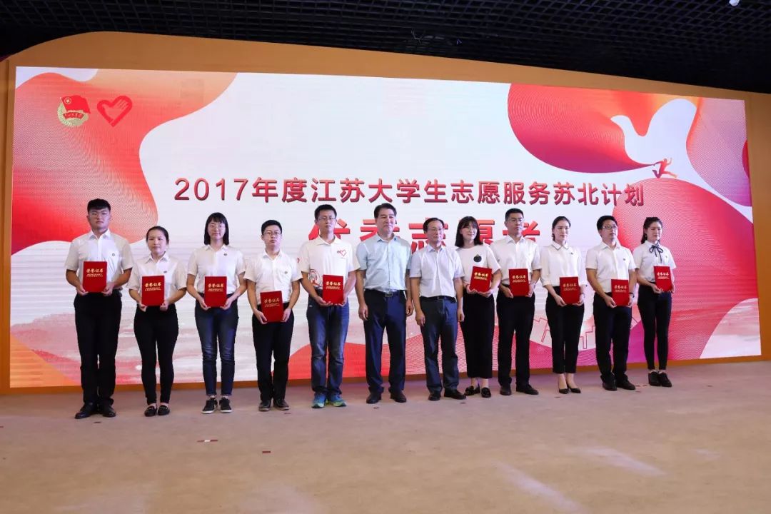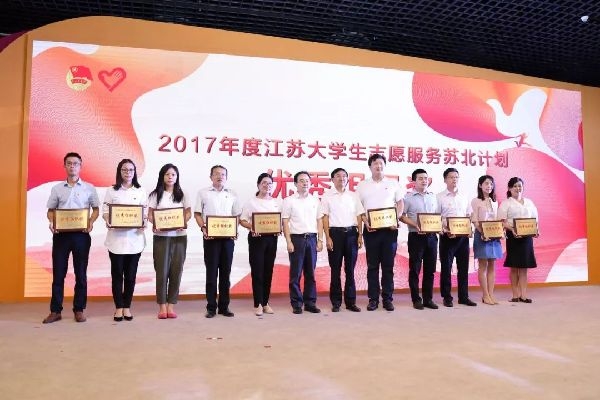 江苏省委组织部部务委员黄楚中、省教育厅副厅长苏春海为苏北计划优秀志愿者代表颁奖。