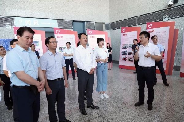 与会领导参观江苏研究生支教团20周年及苏北计划志愿服务成果