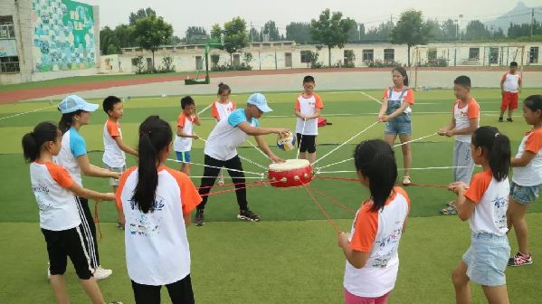 在市中区催马小学,志愿者们为学生设计“珠行万里”、“不倒森林”等拓展游戏,加强学生们的团队合作意识;罗而小学的志愿者为学生们开展手工课,大家制作的有模有样。槐荫区则在社区组织开展诗文朗诵活动。