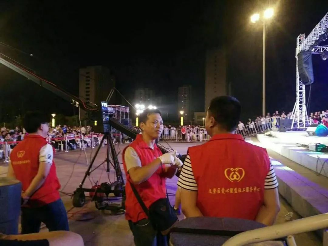 在7月份的文登学广场,为期9天的2018“讴歌新时代 致敬奋斗者”广场文艺晚会正在精彩上演,来自爱心联盟社工服务中心、蒲公英公益平台、区青少年宫志愿者服务队的志愿者们忙碌在台前幕后,搭建舞台、维持秩序、服务演员......志愿者们的风采,也吸引了更多的市民加入其中,共同传递文明正能量。