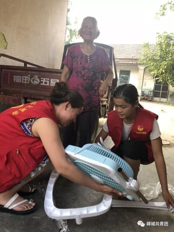 7月23日,峄城共青团“金晖助老——夏日送清凉”志愿服务活动在峄城区青年之家拉开帷幕。团区委为110名贫困老人每人送上一台电风扇,并组织7个镇街的100余名青年志愿者开展了拉一次家常、整理一次家务、清理一次个人卫生、维修一次家电等为主要内容的“五个一”志愿服务活动。