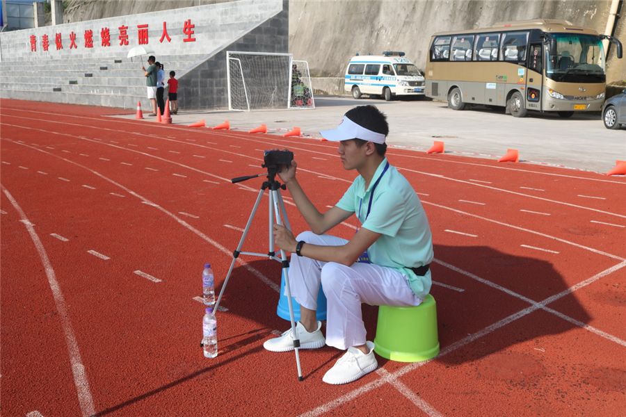 摄影青小元专心做好赛事全程摄像工作,无论日晒雨淋,他们都恪尽职守,从不缺席。
