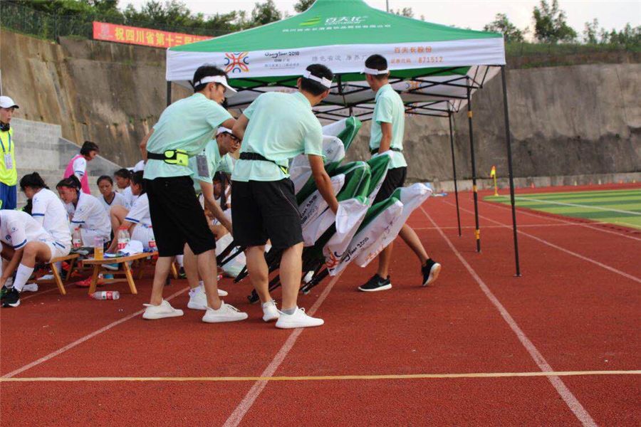 👆场地志愿者们正在为赛前积极做准备,搭建遮阳棚,为省运做出自己的贡献。