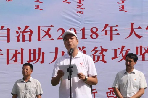仪式上,与会领导为内蒙古2018年度西部计划志愿者代表、共青团助力脱贫攻坚内蒙古青年志愿者总队授旗,表彰了2017-2018年度西部计划优秀志愿者个人。