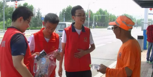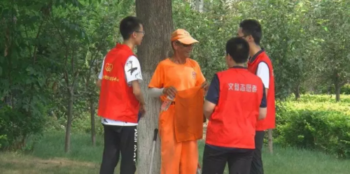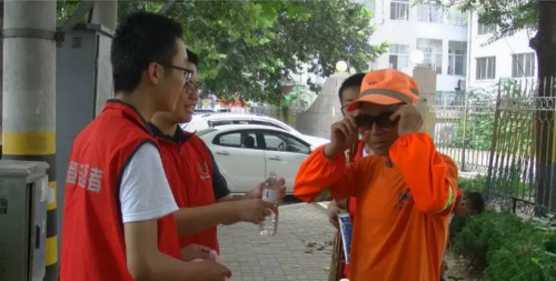 同时,假期中的学生志愿者也联袂上阵:有的为爷爷奶奶送矿泉水、拧瓶盖,有的给爷爷奶奶递毛巾,有的则主动接过手中的扫帚扫扫地、倒垃圾,一直扫到汗水湿透衣背......