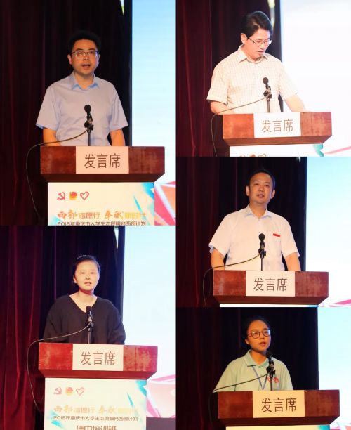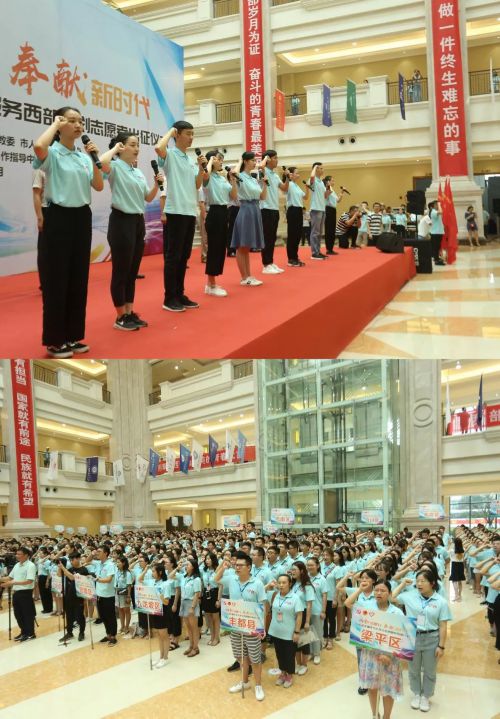 为即将上岗的脱贫攻坚、基础教育、服务三农、基层社会管理等12支志愿服务队授旗志愿者代表带领全体志愿者宣誓:立足岗位、尽己所能、帮助他人、服务社会、传承志愿精神,践行核心价值观,以青春之我,奋斗之我,为全面建成小康社会,实现伟大中国梦贡献青春力量!