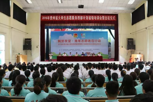 7月23日,“脱贫攻坚 青年志愿者在行动——贵州省2018年大学生志愿服务西部计划省级培训暨出征仪式”举行。