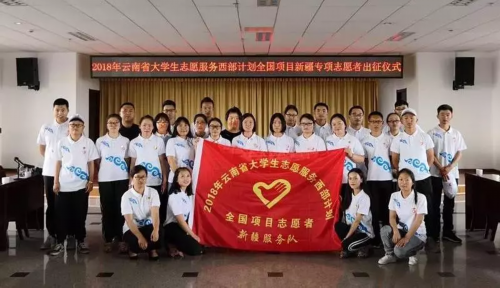 7月19日,2018年云南省大学生志愿服务西部计划全国项目新疆专项志愿者出征仪式在青年大厦举行。西部计划云南省项目办同志及2018年西部计划新疆专项志愿者参加仪式。