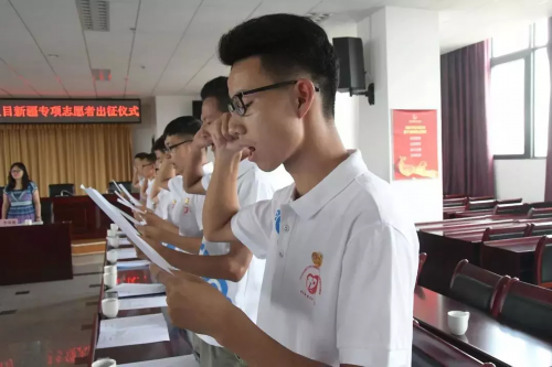 7月26日,2018年新疆生产建设兵团大学生志愿服务西部计划出征仪式在新疆师范大学温泉校区举行。