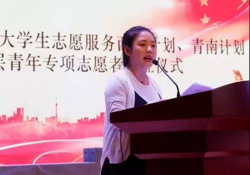 出征仪式上,往届西部计划志愿者代表、2018年西部计划志愿者代表分别发言,表示要在奉献中释放青春激情,追逐青春理想。