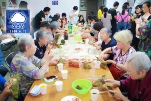 夏天的清凉随着微风细雨穿过指缝,亦如绿色粽叶的清香沾染指尖。这个雨天,又恰逢端午,志愿者们用自己的陪伴,给老人们送去了持久的温暖与最美好的祝愿。