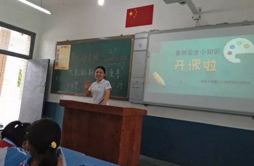 暑期为学生各种事故高发期,贵大研支团队员围绕小学生日常安全知识,就如何安全用电,预防火灾,谨防溺水及地震逃生等各种突发事故相关逃生和自救方法对同学们进行了强化教育,教导学生暑期生活注意自身安全,健康平安过暑假。